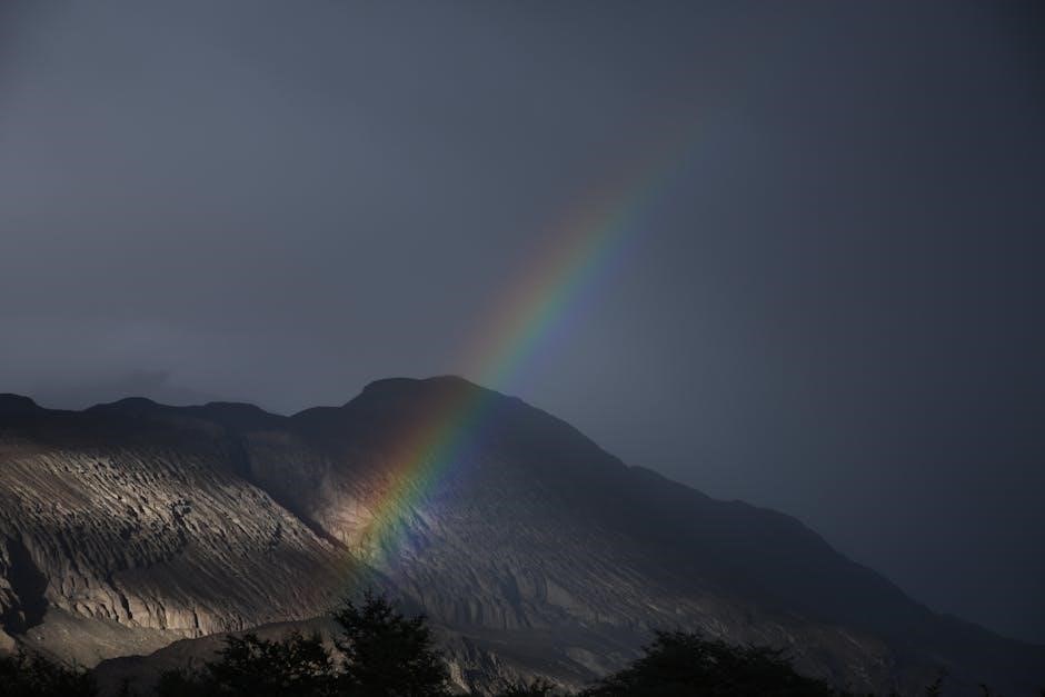 Rainbows form through light refraction and reflection within water droplets, a phenomenon unrelated to the Rainbow Passage PDF’s speech assessment origins, yet equally fascinating․